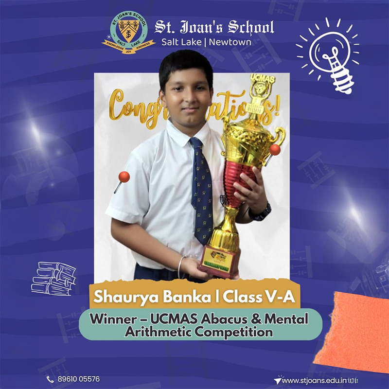 Shaurya’s sharp mind, focus, and dedication have truly set him apart. This achievement is a testament to his hard work and the spirit of excellence we cherish at St. Joan’s School.